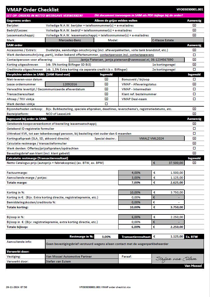 Door middel van deze VMAP checklist kun je jouw orders controleren. Houd de checklist naast je SAM order en controleer of je alles hebt gedaan wat er wordt verwacht. Na het invullen van de checklist voeg je deze als PDF bestand bij in het SAM dossier.